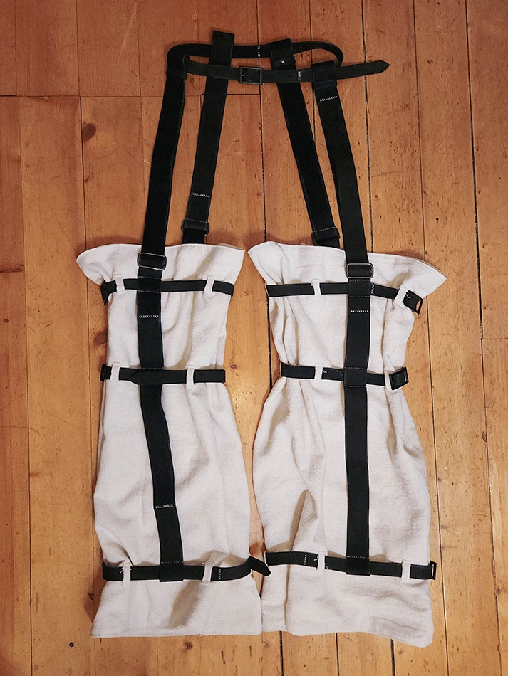 • Pantalon accessoire unisexe en lin et ceinture en cuir récupéré, ajustable garce aux différentes lanières et boucles, forme large, confection artisanale en Suisse. Attention le design peut présenter de légère variation dû aux matières récupérés.
